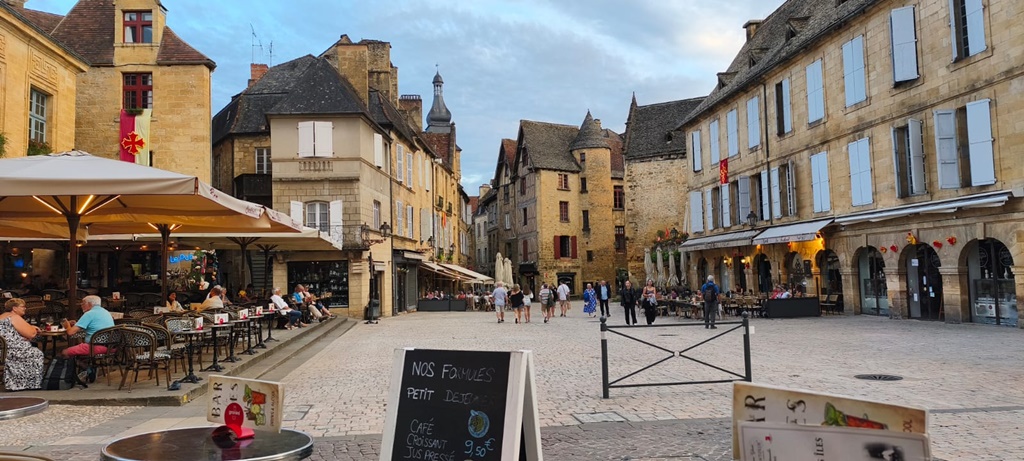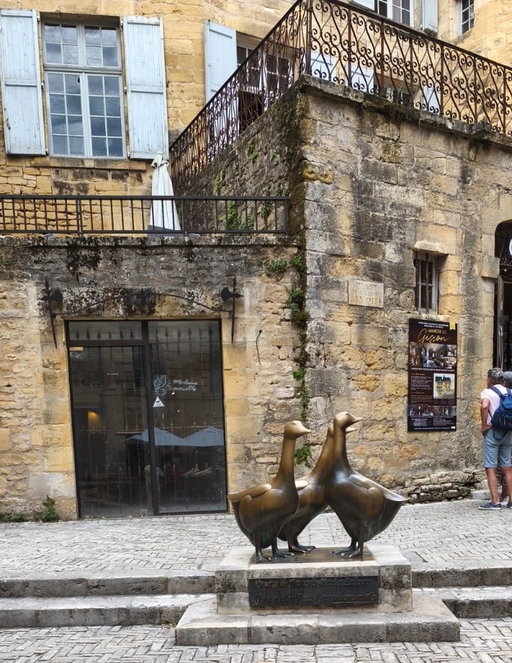 Después de visitar Burdeos, t loomamos como base el pueblo de Sarlat, uno de los más bonitos de Francia, auténtico escenario medieval, empezando por recorrer su mercado al aire libre en la plaza del Ayuntamiento, junto al mercado cubierto. Imposible resistirse a las exquisiteces que se ofrecían en los puestos: quesos, patés, foies, mermeladas, nueces, licores, verduras… Nos alojamos en un apartamento y compramos provisiones como para cenar una semana y no los tres días que estuvimos.