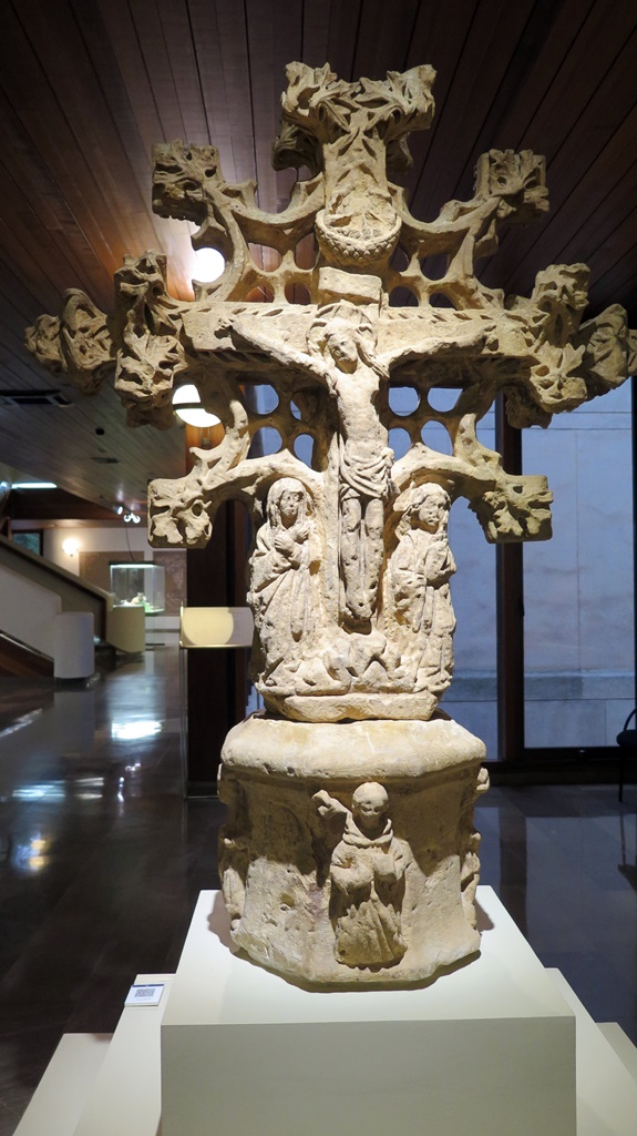 Al día siguiente, acudimos puntuales al museo del monasterio 👇, atendido por Inma, que nos regaló -la entrada es gratuita- una interesante explicación sobre los dos objetos que nos interesaban, donación de la reina a su monasterio: una Virgen abrideira 👇 y una Cruz de cristal. Ambas piezas ocupan un espacio independiente del museo, dentro de sendas urnas de cristal, lo cual, si bien garantiza su protección, dificulta las fotos.